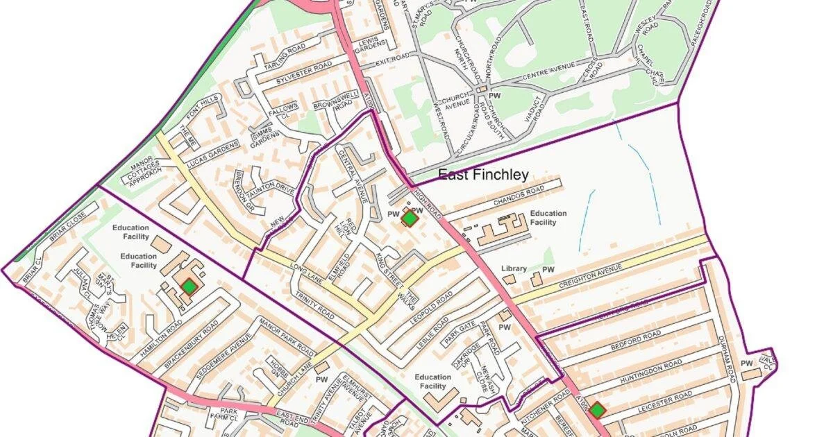 Geographical Position: The name derived simply from its location at the eastern side of the parish, bordering the area that was still known as Finchley Wood until the 17th century and, by 1800, was known as the eastern part of the infamous Finchley Common.